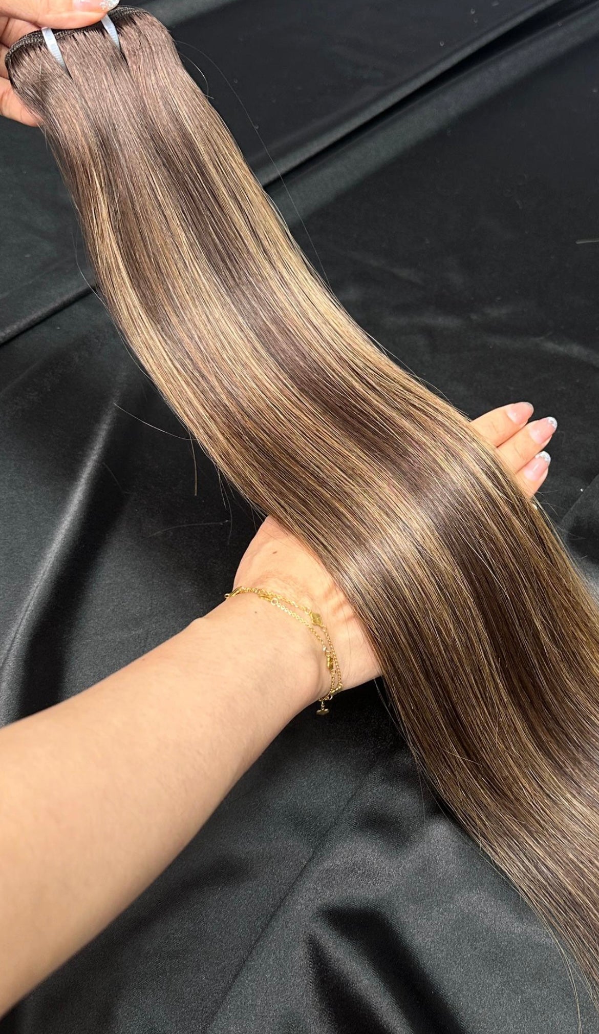 Meet Miss 'Expresso Kiss' she is a stunning mixture of a dark brown base with light brown highlight streaks, She has the perfect tanned tone which will have heads turning.